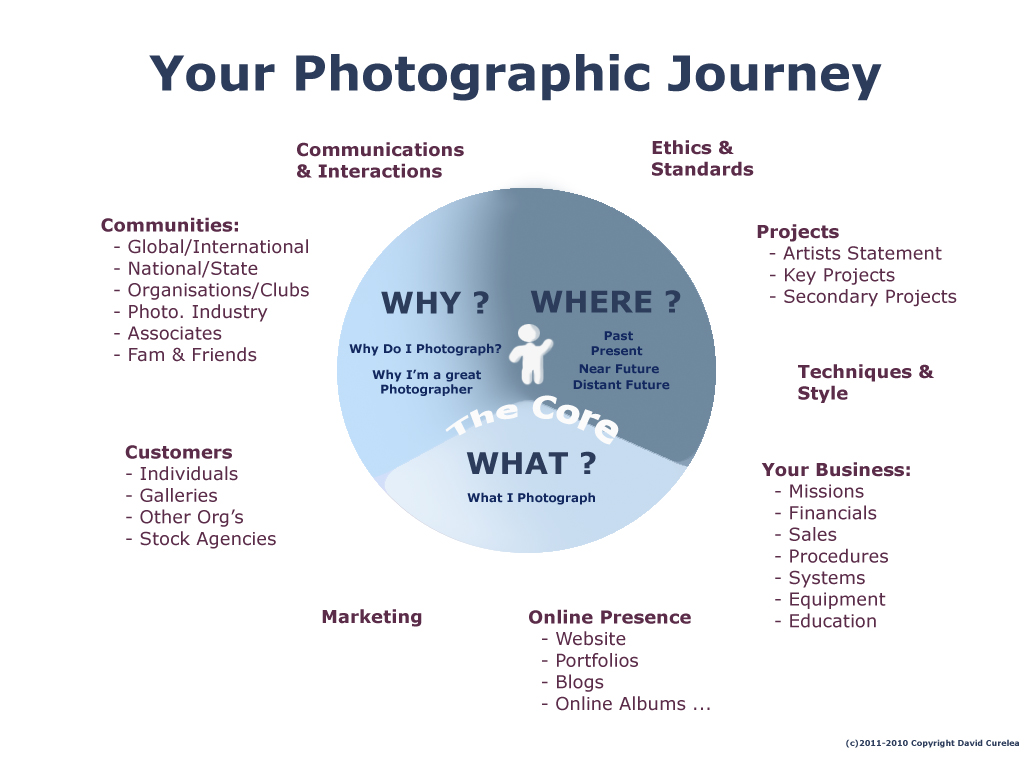 The Photographic Journey Model is a powerful model for identifying the crucial core and direction of our unique Photographic Journeys. David Curelea developed this simple, yet very powerful Model to help identify, give clarity to, and direct our Photographic Journeys.